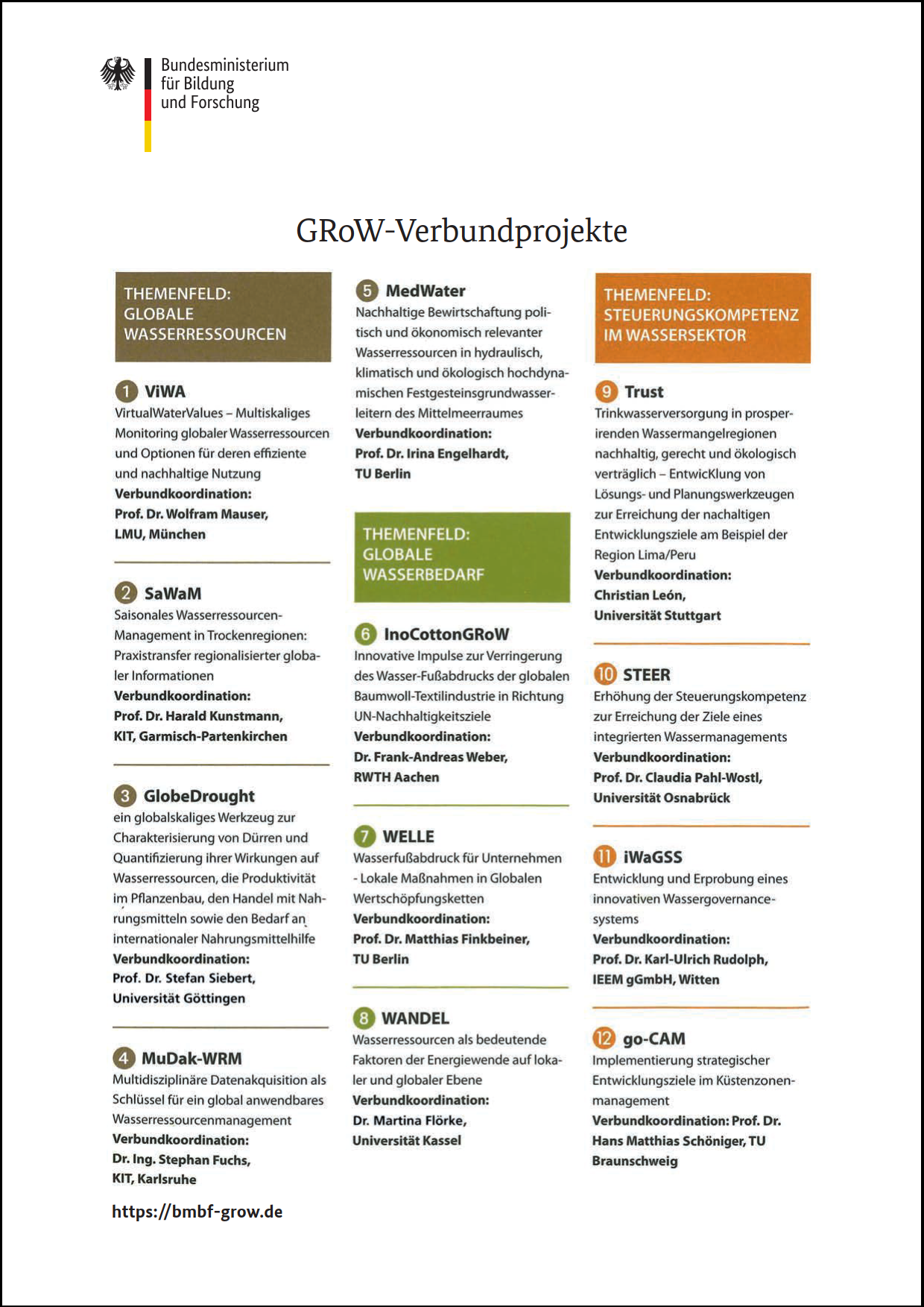 Project sheets on the BMBF funding measure GRoW